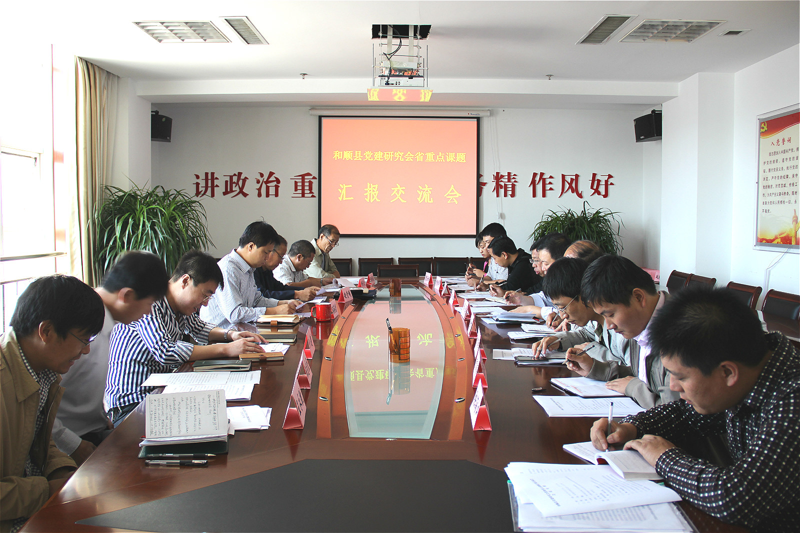 会上,各课题组负责人就《落实基层党建工作责任制研究》、《在推进城镇化和农业现代化进程中加强农村基层党组织建设研究》两个省重点课题的调研和课题报告撰写情况,分别进行了交流汇报,参会人员围绕课题报告进行了讨论,提出了有针对性的意见和建议。最后,县委常委、组织部长张海荣就如何做好党建研究工作指出:一要高度重视,广泛参与。各党(工)委要把党建研究工作摆在重要位置,围绕中心,服务大局,积极热情参与,深入开展课题研究,高质量高标准完成课题研究及报告撰写任务。二要讲求方法,深入调研。要坚持从实际出发,不断总结新经验,探索新规律,谋求新发展。要坚持问题导向,让丰富的理论研究成果植根于深入调查研究的基础上,形成既有理论指导意义,又有实践借鉴价值的研究成果。三要加强交流,相互促进。各党(工)委、各课题组要进一步加强交流与合作,共同探讨,相互促进,共同提高,不断开创党建研究工作新局面。 (李振华)
